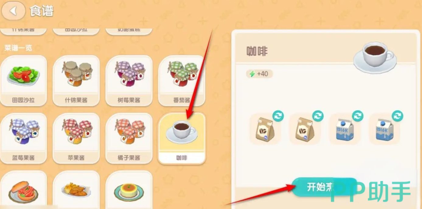 想不到诡异的饮料制作材料竟然是咖啡吧,首先我们需要来到灶台面前,选择咖啡去进行烹饪。找不到灶台的话去地图上找马西莫npc就可以了哦。
