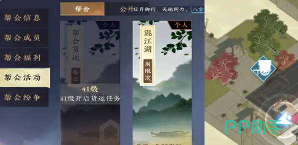 玩家在帮会活动界面可以通过参与的方法完成传送,然后和npc对话。一个星期可以玩两次混江湖,每一次就需要耗费100个活力值。在每一次游玩结束之后,玩家就可以得到风云令,还有帮贡作为奖励。在达到特定条件之后,玩家还能有机会得到“混王之王”称号。
