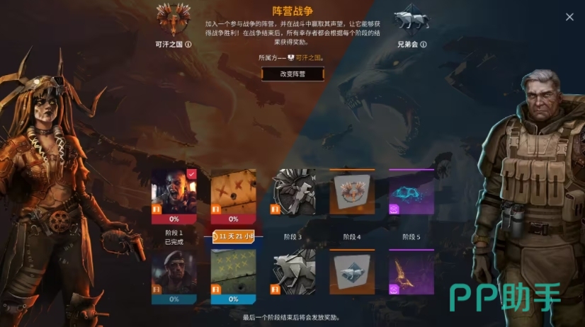 由于幸存者可以在任何时候改变当前所在的阵营,因此总是可以改变幸存者为之战斗并获取声望的一方,在阵营大战结束时,每位幸存者都会收到奖励,即使他们并没有参与战争,但这些不参与阵营大战的玩家将无法影响本次战争的结果,也无法影响所发放的具体奖励内容。