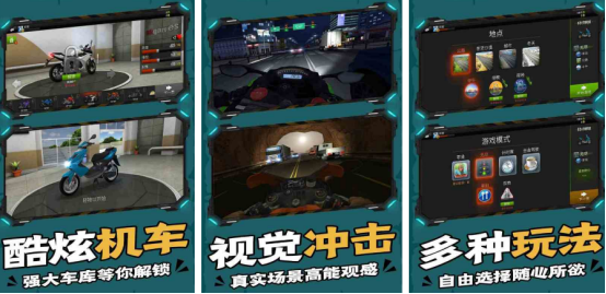 每当说到赛车,人们总会想到跑车,其实摩托车也是玩家特别喜欢的,不同类型的炫酷机车让你感受不同特色。游戏当中有多种模式及难度等级玩家可根据实际实力去选择。驾驶摩托车时可以避开车辆最终到达终点,游戏画面音效设计独具特色,让玩家感受真实的赛车氛围,还有较多任务及成就,等待你前去挑战。