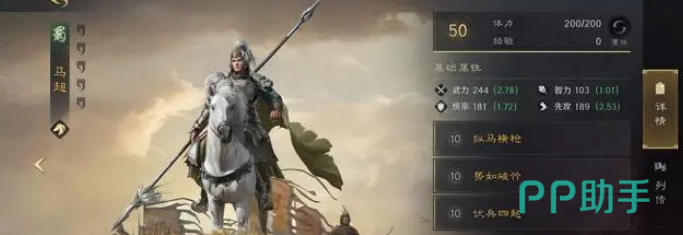 马超,这位历史上的猛将,若以现代视角来看,就像是天生为战场而生的勇士。他的基础属性就像是身体里流淌的热血与不屈,武力值高得惊人,就像是一把精心锻造的利剑,专为冲锋陷阵而生,而他那超群的先攻能力就像是赛场上的起跑者,总能在关键时刻快人一步抢占先机。