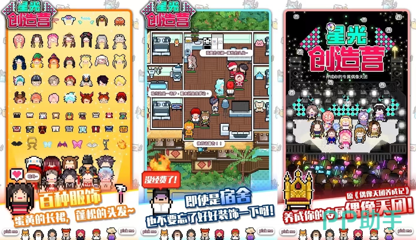 《偶像天团养成记》将组建一个偶像天团,将偶像天团逐渐的知名度提高,可以为他们来制造专辑,安排各种通告和行程,开始全球巡回演唱会等,通过这些行程和目标可以去赚取更高的收益。偶像天团中的每一位成员需要进行造型的搭配,有各种各样百变的服装,玩家可以去道具店中进行选取。每一名偶像有的风格,在游戏里面担当一位经纪人的角色。