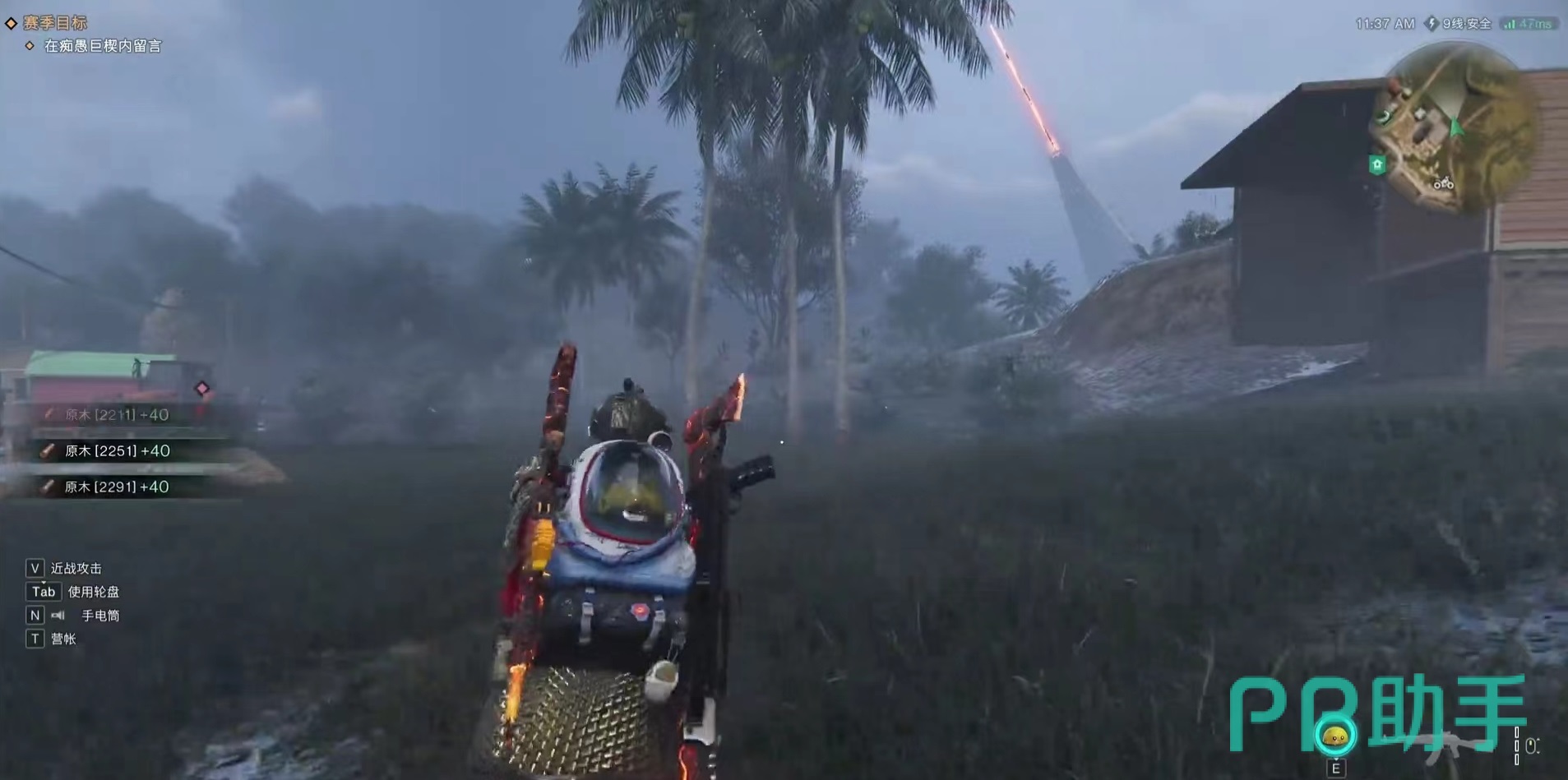 这四棵香蕉树采集完之后,大家可以去对面,对面有一些椰子树,也可以顺手直接拿下。椰子和香蕉都是非常需要的资源,在旁边还有一些椰子树和香蕉树,虽然不密集但数量也不少。
