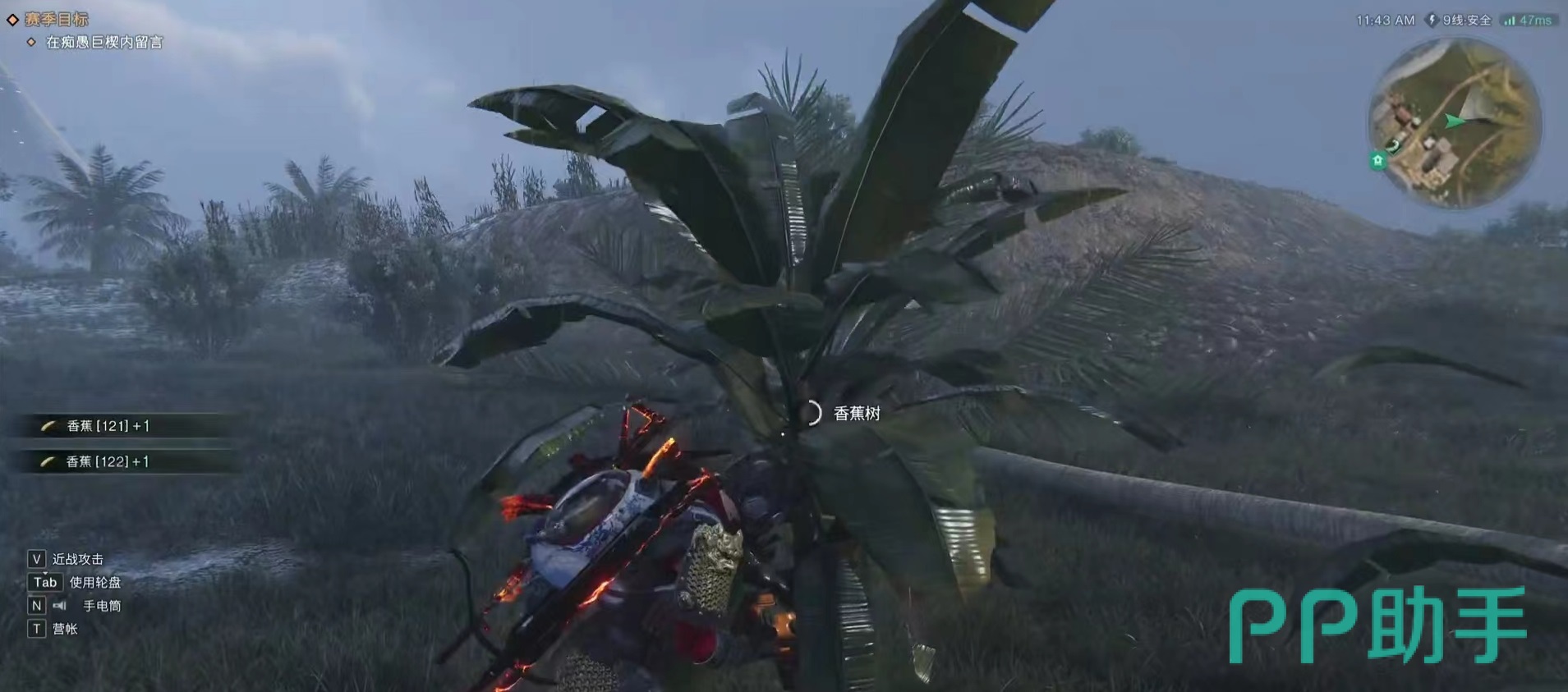 已经结果的香蕉树会有非常明显的香蕉出现,这样就是可以采集的。如果香蕉树上没有果实,采集也不会得到。大家要想快速寻找,一定要找到刷新比较多的地方,位置在代顿湿地坐标(5749、-5266)这个位置的附近,当然坐标可能并不精确,但大家到了之后就可以看到这里有4个香蕉树凑在一起。