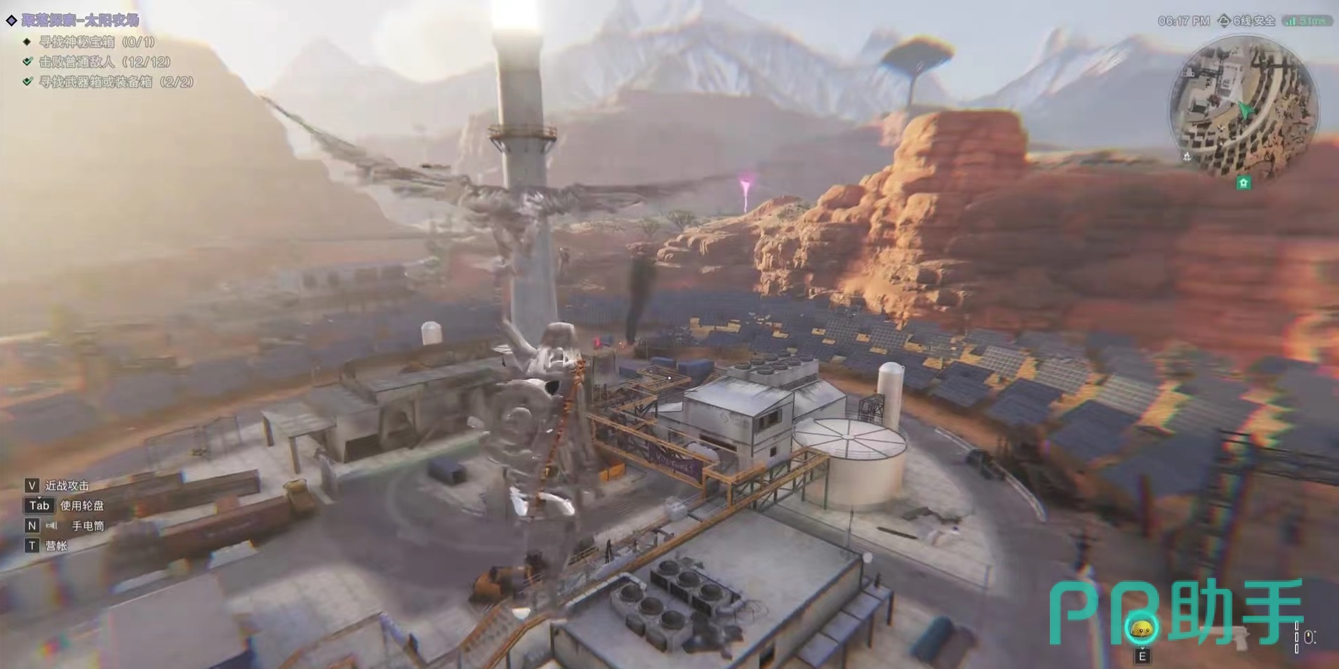 大家需要先从据点右侧的右上角三岔口出发,先把据点右侧两个金色箱子拿到,在前往中部去寻找神秘宝箱,骑上自己的摩托车赶路会快一些,路上注意击杀小怪。大家在寻找的时候有一个难点,那就是要通过滑翔方式在高点直接落下来,在滑翔前要确认自己的体力状态,在滑行的过程中就可以看到宝箱的光芒,然后打开就能获取了。