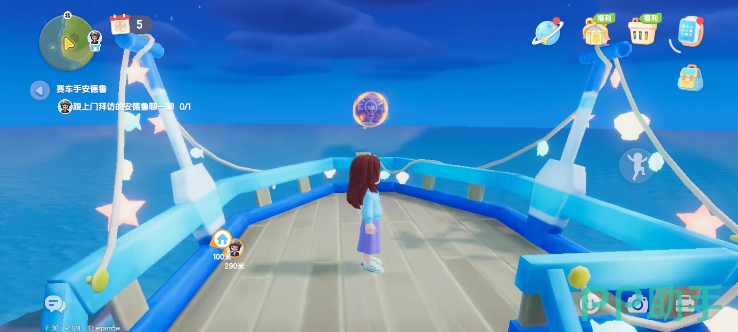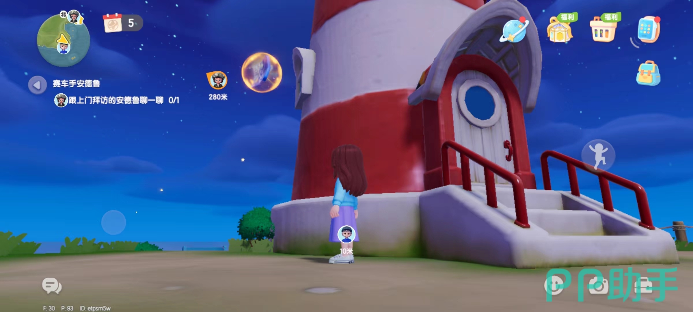 海洋风厨具收纳盒在灯塔的位置,玩家需要从右边的楼梯爬上灯塔的二楼,因为当玩家到达这里时会发现,图纸的高度是跳跃无法拿到的,加上泡泡里的一直在环绕灯塔飘动,玩家选定一个位置,等到泡泡飘到眼前的时候,即可拿到海洋风厨具收纳盒的图纸。