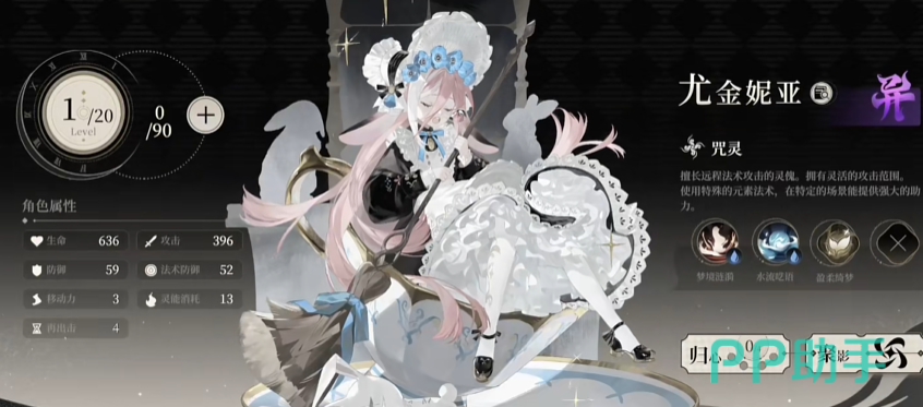 尤金妮亚其实是锦罗城保洁公司“清道夫”的员工,与养父杰克·费尔南多一同创立并经营这家公司。在游戏中,她会以兔子妖鬼傀的形态进行战斗,同时在水属性的加成下,会使用“霜糖之梦”武器来对敌人造成大量伤害。作为咒灵职业的灵傀,尤金妮亚的攻击方式多数为远程类的,而且自身的机动性非常的高!能够在特定的场景中提供强大的助力。但是这里还是需要注意的使,由于尤金妮亚的定位问题,所以在游戏当中,小伙伴们可以利用尤金妮亚的远程攻击方式,在拥有行动点数的时候,优先让盾卫类的角色先进行行动,在去考虑尤金妮亚出手的时机!