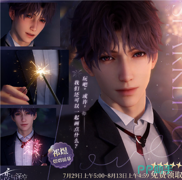 在【熠熠生辉】的故事当中,玩家会和祁煜开展一场海边旅行。在旅行的终点,一切的夜晚当中,大家会和祁煜一起进行一场快乐的海滩派对。并且,派对之后,还会有祁煜为你准备的惊喜烟花和心意表达。