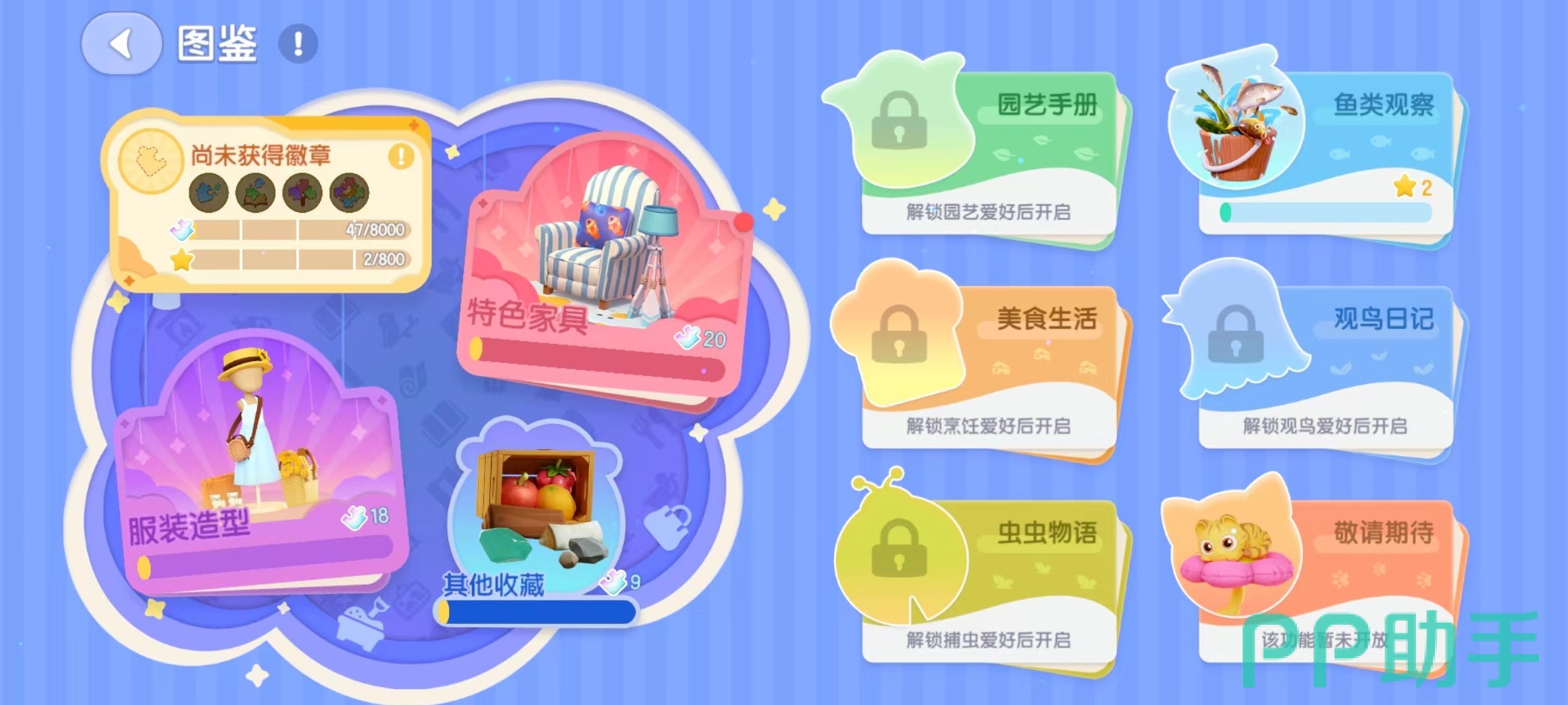 游戏中还有着各种的收集系统,有着各种的元素,像是鱼类品种、美食、作物等等,给收集党满满的成就感。玩家可以在游戏过程中添加好友,一起约定好时间驾驶帆船出海钓鱼,各种玩法待玩家开发。游戏还有着精美的游戏立绘,各种时尚的服装,温馨的美术风格,带给玩家满满的幸福感。