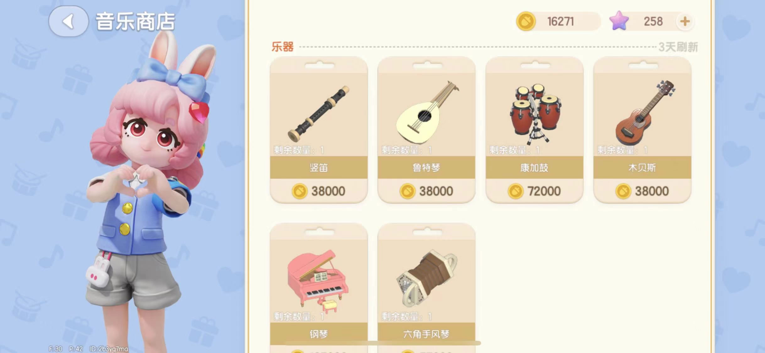 但是安妮的音乐商店并不是一直提供所有的货品,在一段时间内她出售的乐器种类是相同的,但不是所有的乐器都会在列表中。有时候吉他并不会出现在销售名单中,必须要等她下次进货再看看看有没有需要乐器。除了吉他之外,还有钢琴、竖笛、康加鼓、贝斯、手风琴等各种乐器都可以买到。