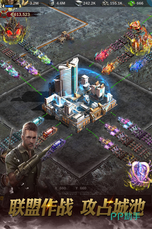 首先玩家会进入到一片废墟之中,为了能够让整个城市重新运作起来,也为了能够让更多的人类可以复兴起来,所以玩家身上肩负着重要的使命,需要建设军队来抵御僵尸的入侵。而且除了个人战斗以外,玩家还可以在游戏里面集合更多的玩家一起组成团队进行团战。整个游戏要求玩家具有更高的能力,而且可以进行兵种的排兵布阵。