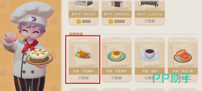 波叔的筹建任务,其实很简单,只要给他一个“炸鱼薯条”就可以,制作需要先在厨师商店里购买该配方,然后直接在旁边的锅台上制作就好行了,需要2条鱼和2个土豆,制作完了之后去家具店找波叔即可。