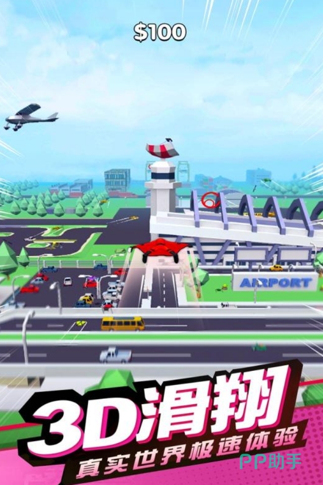 翼装飞行运动将在这款游戏里成为主角,玩家们也将在游戏里体验到利用翼装飞行装备在空中进行滑翔的快乐。游戏只需单指就能操控,只要控制角色避开滑翔路上的所有阻碍,令自己不会停止滑翔,就能不断地积累滑翔距离。这些障碍的种类非常丰富,既有常规的高楼大厦和各种建筑地表,又可能会是突然出现的鸟类或飞行物,给人带来了极为刺激的体验。