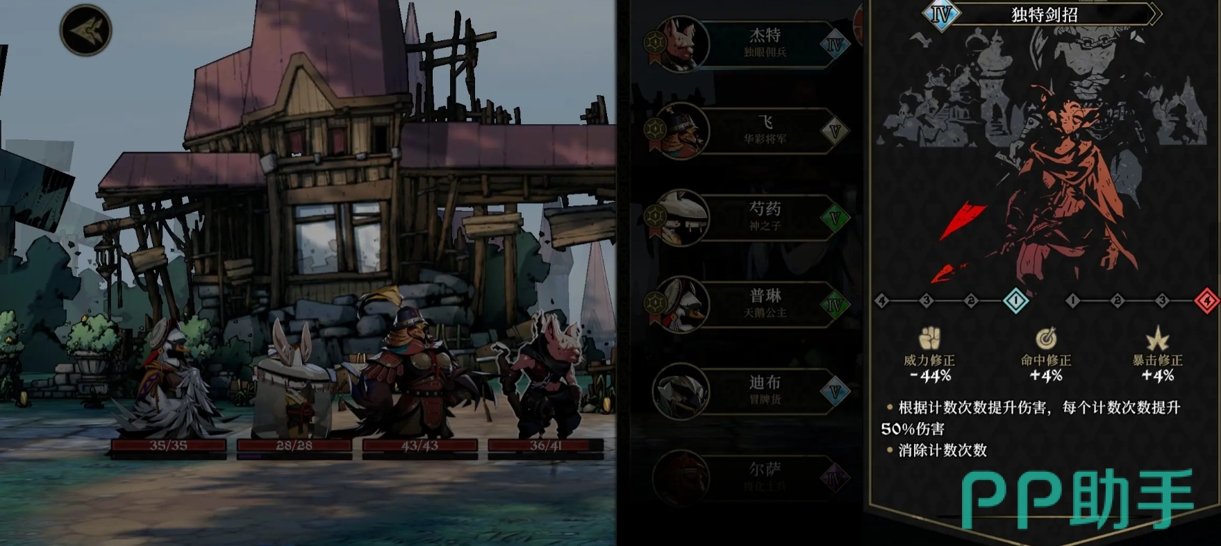 第二个主动技能是独特剑招,这个技能同样只能在一号位使用,攻击四号位的敌人,每次使用远攻近射后的计数都会为此次攻击增加50%的伤害,使用完后消除远攻近射的计数,都会重新计数,所以这个技能跟上面的远攻近射形成了互补,通过前期大家对远攻近射的使用次数,也一样可以提高这个技能的输出,所以大家用的时候可以合理轮换两个技能,这样就可以在保持高输出的同时控制受到的伤害。