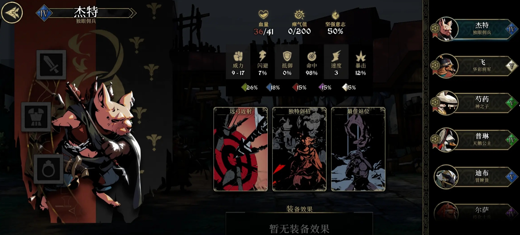 杰特在游戏中的称号是被称为独眼佣兵,也是一名特殊的射手角色,由于其独特的技能机制,他必须站在第一排充当近战射手,这种非传统的定位赋予了他独特的战斗方式,第一个主动技能是远攻近射,这个技能仅能在一号位使用,攻击一次一号位的敌人并使其退至三号位,自身计数加一,受到的伤害增加30%,每次使用都会降低三分之一的伤害,三次后伤害为零,但计数继续增加,减益也会增加。