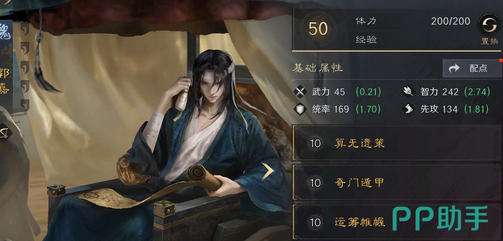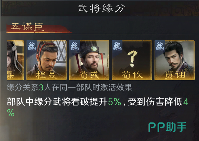 贾诩在《三国谋定天下》中以其狡诈的计谋和强大的辅助能力著称。他的战法【诡道玄机】不仅能够在攻击时造成混乱效果,还能在特定条件下增加谋略伤害和恢复自身兵力。这使得贾诩在战斗中既能作为输出点,又能承担一定的辅助任务。在天灾配置中,贾诩可以作为重要的辅助角色,与曹操、郭嘉等武将共同组成强大的天灾队。贾诩的混乱效果和谋略伤害可以与天灾配置的伤害机制形成互补,进一步提升队伍的战斗力。