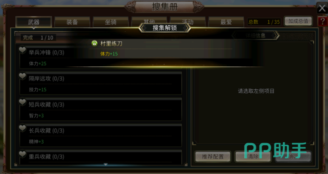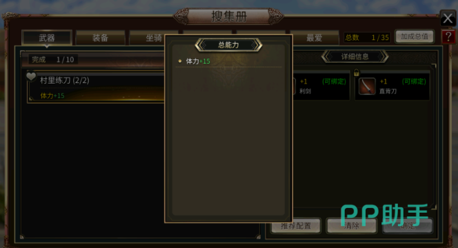 已经放入还没有确定收录的物品,只要按下清除按钮就会返回背包,如果有些物品的需求是指定强度的物品,大家可以按照需求放入任意物品,比方说搜集册需要强度等级40到60级的短兵类,玩家可以放入40级的龙渊剑,也可以放入50级的苍羽扇。