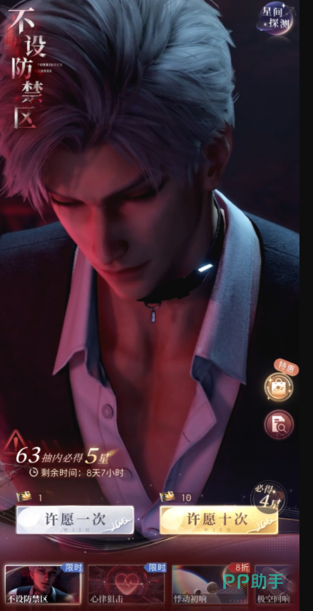 五星卡不设防禁区是秦彻首张限定的月卡,获取方式是使用限定的黄票抽取卡池,保底方式继承上一个限定卡池的抽数,70抽小保底,140抽大保底。