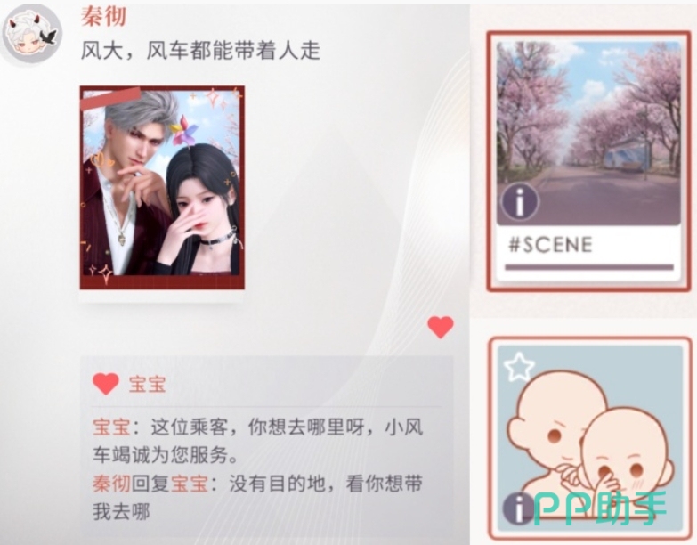 选择风车头饰和樱花背景,然后与秦彻一起执行“暗中观察”动作。这个组合不仅浪漫,还增添了一些趣味性。拍完后,保存单张照片,即可触发朋友圈。这个动作和背景的组合可能会展示出秦彻对于细腻情感的敏感和关注。