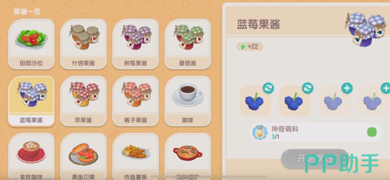 首先是原材料的获取,小伙伴们可以在体力充足的情况下,通过砍树的方式来获取你想要的各种水果。当确保手中的原材料足够之后,大家就可以开始制作果酱了。果酱的种类还是比较繁多的,比如说番茄酱,树莓果酱,蓝莓果酱等,所需要的原材料不同,成本和售价也有很大的区别。