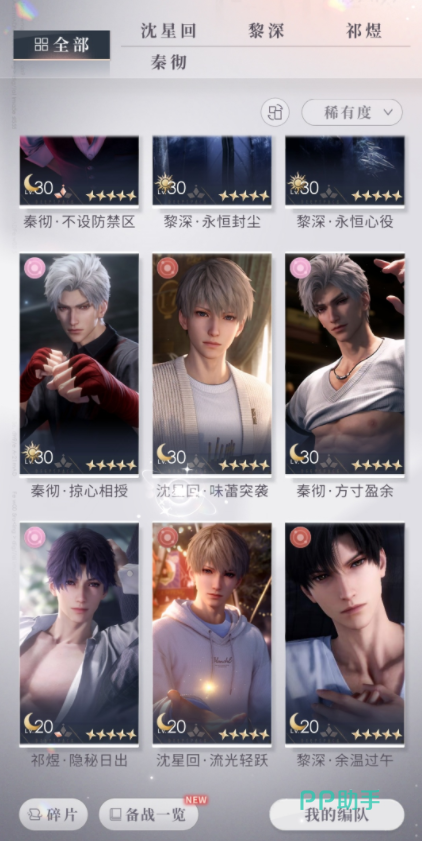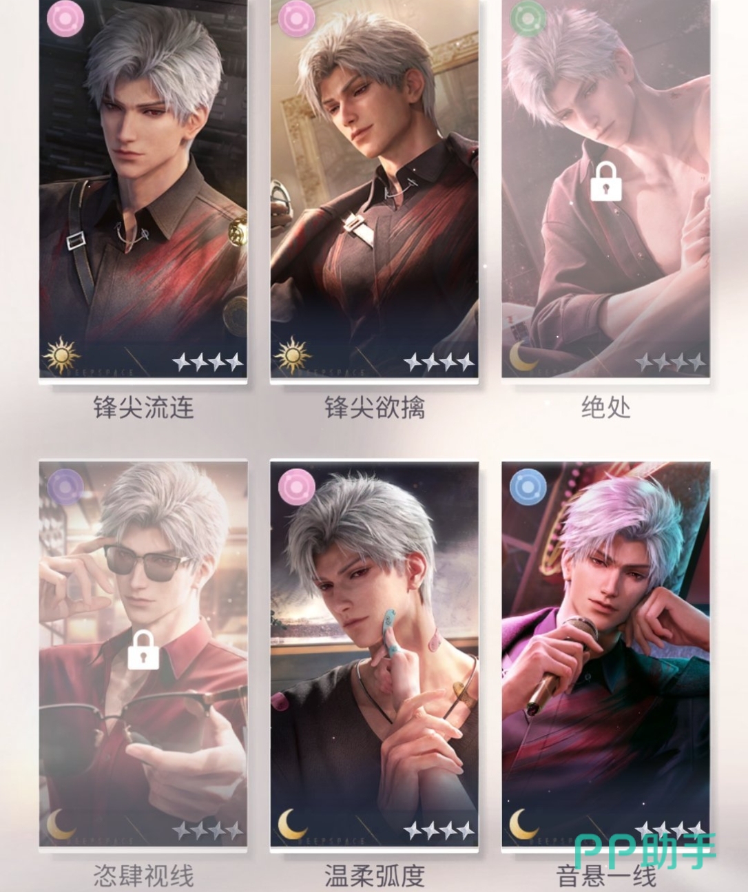 目前卡池常驻的秦彻四星卡有6张,分别是2张日卡锋尖流连、锋尖欲擒,月卡虚位以待、续曲交响、温柔弧度、绝处、音悬一线、恣肆视线。其中,恣肆视线是最近的“十日与你”签到活动的第十日奖励,若玩家错过了签到,这张月卡只能从星际探测中获取,或者探测30个恣肆视线碎片合成。