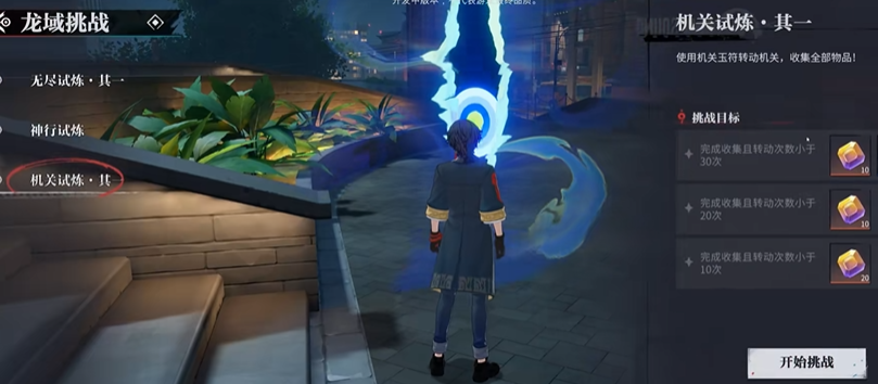 本次测试给大家推出了两个不通过 的机关,都是属于试炼机关,也是非常的简单的,只需要利用最少的步骤,去获得机关中的宝石就可以了,首先就是试炼机关【一】,进入关卡后,将注意力聚焦于最前方那引人注目的巨大轮盘,它将是您解谜之旅的起点。轻轻一点,先向左轻旋一次,随后再反向右转一次,这一微妙操作将悄然唤醒部分机关路径,为您后续的探索铺设道路。切记,这第一步至关重要,切勿遗漏,以免陷入进退两难的境地。