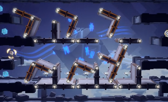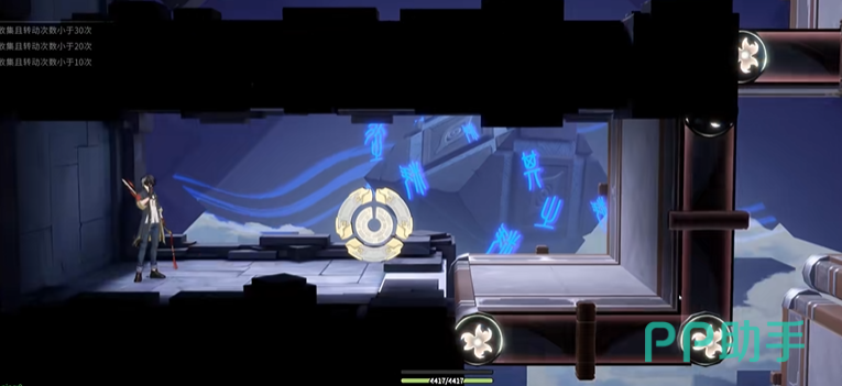 随后,轻盈移至右侧,目光锁定第二个机关,果断地向右转动两次。完成这一动作后,迅速折返左侧,再次对第一个机关施加一次右转之力。此时,您会发现,随着机关的逐一激活,原本断开的路径开始逐渐相连,形成一条通往胜利的隐形桥梁。最后,重返右侧,对第二个机关进行最后一次的右转操作,两次转动之下,机关试炼的通路将彻底苏醒,为您敞开通往下一区域的大门。至此,机关试炼第一关的谜题已被您一一解开,胜利的曙光已近在眼前。