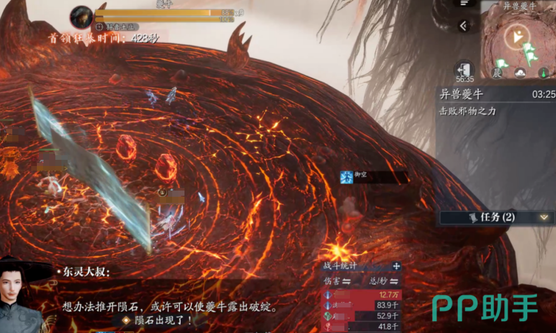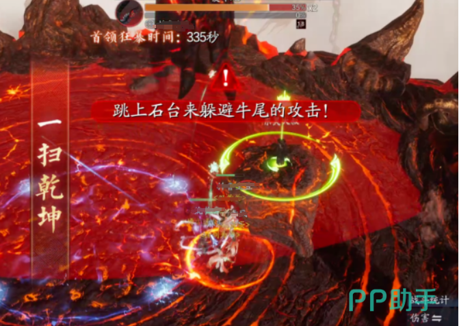 战斗开始后,玩家们首先面临的是夔牛脚下频繁生成的激光和密集红圈的伤害区域。这时候,灵活的躲避至关重要,切勿被这些高伤害区域触及。同时,注意观察四周,因为石头会随机瞬移到某位玩家身边形成黑洞立场,这时需要其他队友及时使用解控技能,帮助被困玩家逃离危险地带。