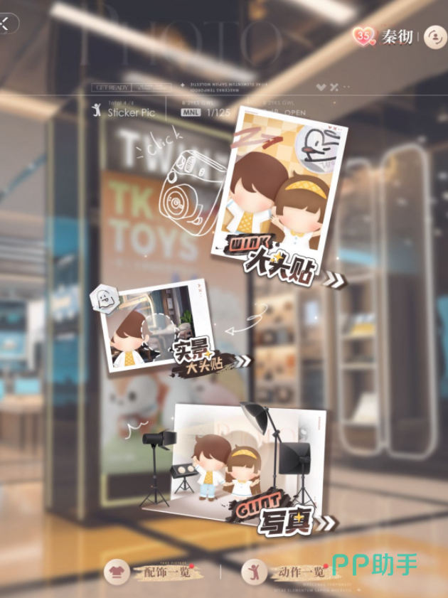 然后,玩家点击主页约会的一起拍照功能,任选一名男主角,进入大头贴拍照。最后,玩家选择好正红色底背景,拍照四宫格,记得不选择动作,也就是在待机状态点击拍照。在保存界面上选中单张照片进行云端保存,该照片就会作为结婚照,触发趣味朋友圈。