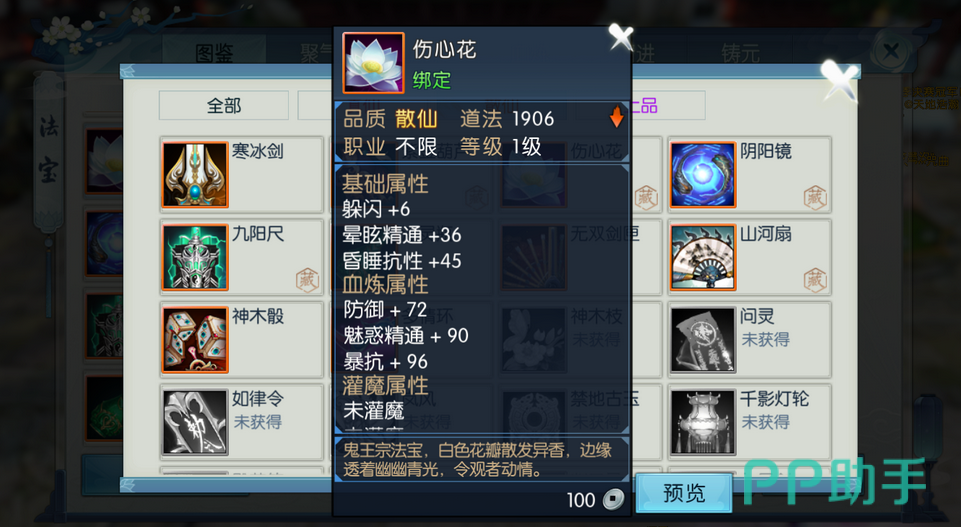 想要获得伤心花,玩家可以通过两个主要途径:天帝宝库的挑战和完成特定任务。首先,天帝宝库是一个充满未知和机遇的爬塔玩法,玩家通过层层挑战,不仅能体验到逐步提升的刺激感,还有机会获得包括伤心花在内的各种法宝。这一过程虽然充满随机性,但坚持每日挑战,总会迎来收获的时刻。