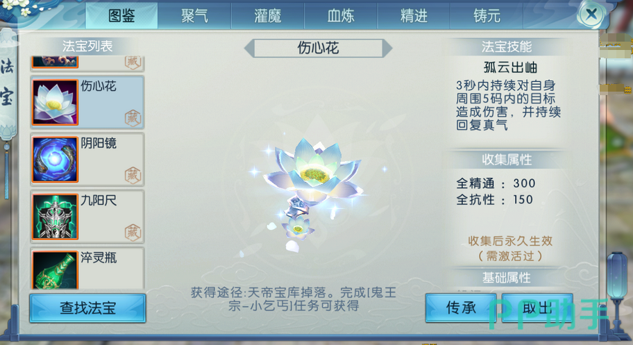 以上就是诛仙2手游伤心花怎么获得的全部内容了。伤心花,这朵在游戏中具有特殊意义的法宝,虽然在游戏中未必能发挥最大作用,但它的图鉴属性以及坐骑造型都颇具吸引力。希望以上的介绍能帮助玩家们更加顺利地获得并利用好这件法宝,让你在诛仙2手游的修仙之路上更进一步。