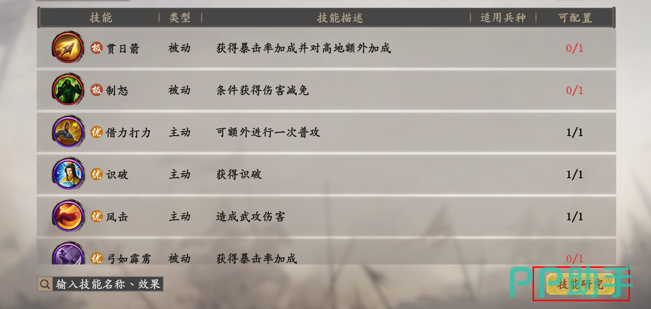 它们分为良优,这两个品质的技能研究,玩家们可以通过资源和通宝来进行兑换,技能奥义也可以在军功商店中进行兑换,技能研究时,首先需要研究前置的技能,之后研究后续的技能,成功研究好技能之后,就可以在技能的界面找到自己所研究的技能来使用,只要学习好自己所研究的技能,对于后续的发展有很大的帮助。