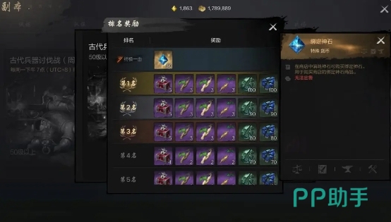 在讨伐战副本中,玩家会获得二种奖励:基本奖励和排名奖励。只需副本进行,每个参与讨伐战的玩家都能获得基本奖励。排名奖励是依据玩家在副本上对BOSS带来的伤害排名的。危害越多,排名越大,奖励就越丰富。尤其是,如果玩家能在BOSS战的最后给予致命一击,还可以获得额外的绑定神石,这是一个非常珍贵的道具。