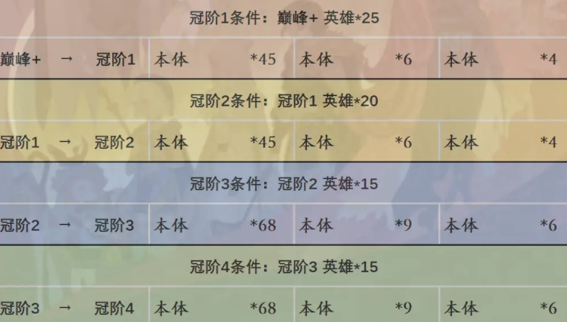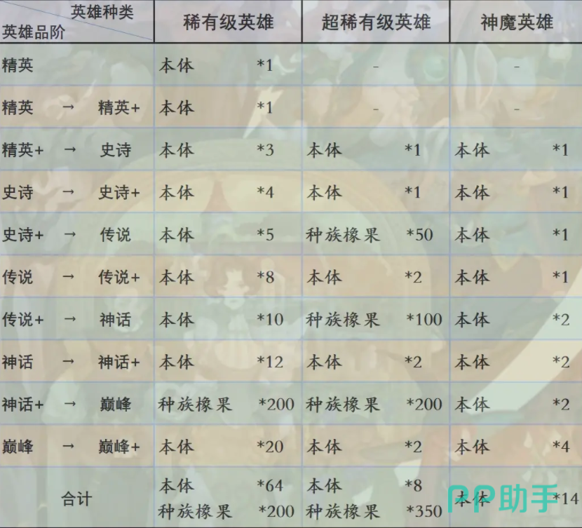在游戏中,英雄被分为不同的品级,而当小伙伴们通过抽奖获取英雄时,他们的品级都是固定的,但小伙伴们可以通过升阶的方式来提升他们的战斗力。在小伙伴们已经获取某个英雄之后,如果再重复获取的话,那么每个英雄将会被分解为三个灵魂印记。当小伙伴们攒够足够的灵魂印记之后,就可以对这个英雄进行品级方面的提升。