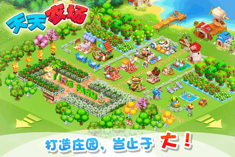 《天天农场》游戏的玩法就让玩家深陷其中感受一场和现实无差的农场生活,在游戏内我们种植作物、建造建筑、机器、畜牧宠物、动物等等,而且随着玩家们完成的任务数目越多,解锁的建筑地区就越广泛,游戏中玩家还可以经营咖啡屋,在农场中建造厨房,自行制作烹饪设备等等,此外讲成熟的农作物进行收割售卖,同时这些动物都能给我们带来一笔不菲的收益。