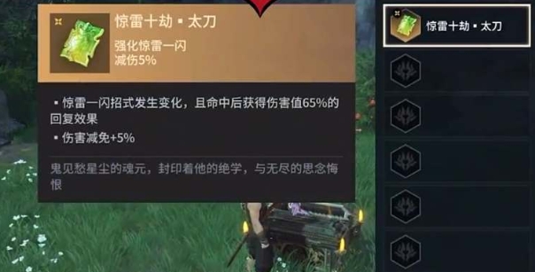 第二个是惊雷十劫太刀,提供了5%的伤害减免,这在激烈的近战中极为重要,它的魂玉效果使得惊雷一闪招式发生变化,能够击飞敌人后接下落攻击,增加了大家连招的可能性,而且在命中后还有65%的伤害回复效果,更适合前线冲锋的玩家,能够在保持高输出的同时,提高自身的防御能力。