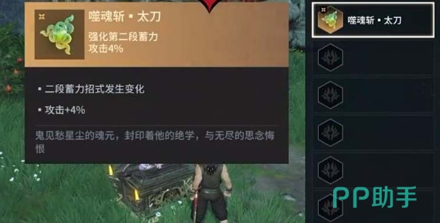 第一个就推荐噬魂斩太刀的魂玉,装备这个魂玉可以带来4%的攻击力提升效果,更重要的是,它的魂玉效果能够让二段蓄力招式发生变化,增加射程并具有吸附敌人的能力,这也是无形中增加了大家攻击的灵活性和命中率,更适合喜欢远程控制和输出的玩家。
