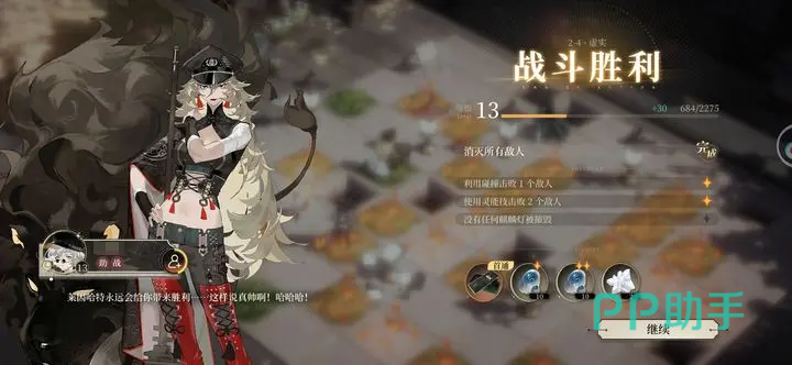 主动技能使用后可以对敌人造成重击,虽然说技能范围只有1格,但是没有冷却时间,也就是说该技能可以连续使用,能让她保持持续输出,还能对目标格子中的敌人造成眩晕的效果,相邻格子的敌人也会受到160%的物理伤害,前期是有不错的控场效果的。