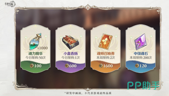 斗魂币在进入到商店之后是比较有作用的,甚至还可以购买各类资源。一开始建议大家可以适当性购买一些小盒香肠,如此就能快速的提升战斗力,迅速地获得各项资源。除了这些之外,还能有机会得到魂力精华、魂师召唤券、中级魂石。
