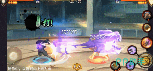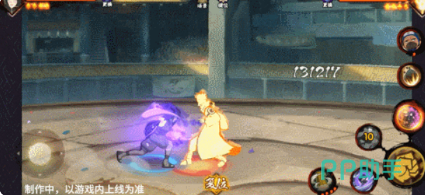 日向雏田的核心技能“双狮拳”是她战斗力量的象征。当首次释放奥义时,她将进入一个特殊的强化状态,双手凝聚起紫色查克拉,仿佛狮子头的形状,对周围敌人造成巨大的炸气伤害。在这个状态下,雏田能够瞬间恢复4颗奥义点,这不仅提供了战斗的持续性,也极大地提升了她的机动性和爆发力。
