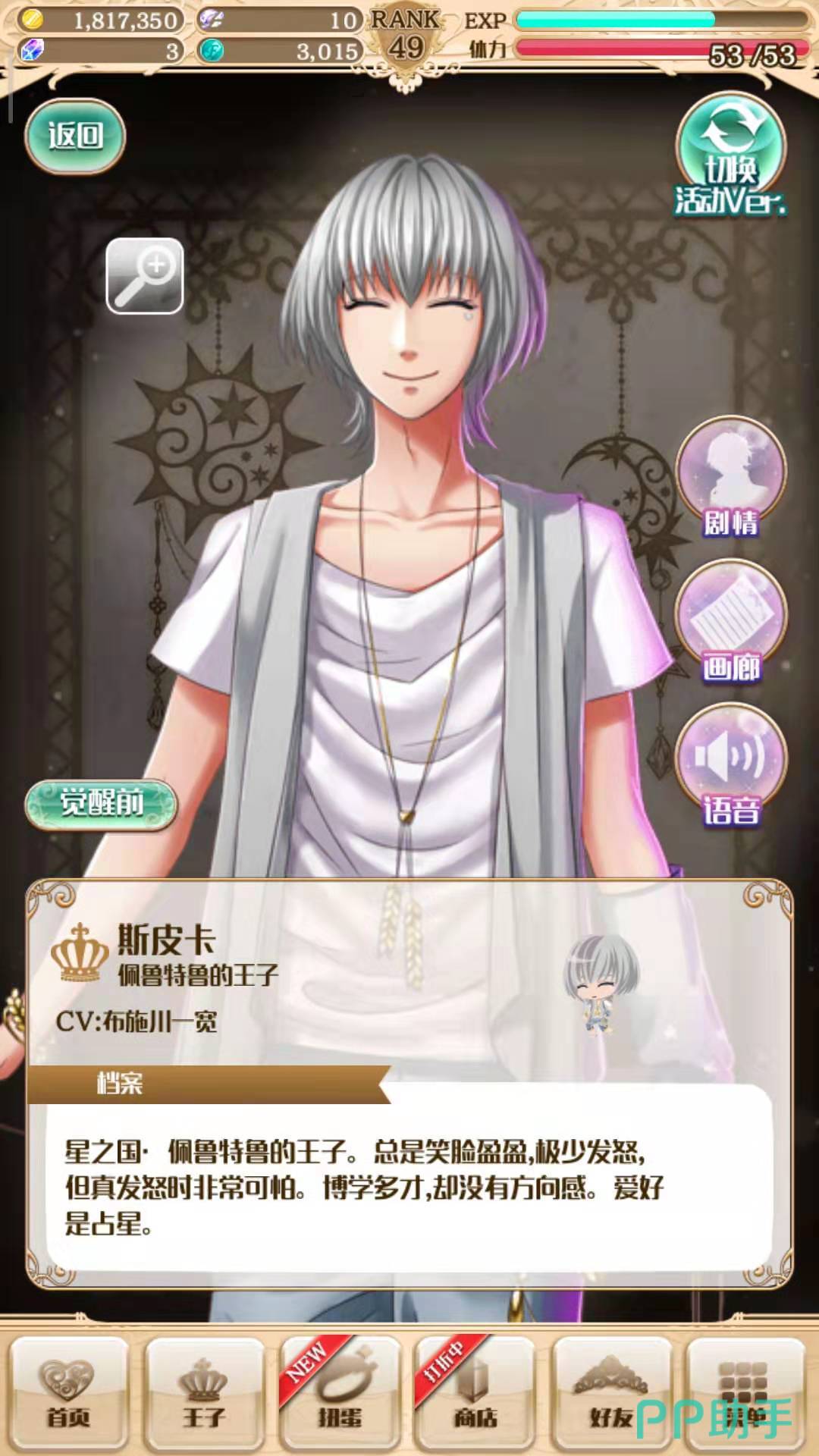 梦王子手游中的斯皮卡是一个很好获得的王子,基本上用友情币十连抽的时候绝对能抽到他,在副本掉落中也可以开出他。梦王子斯皮卡觉醒攻略是豌豆荚小编给各位玩家带来的觉醒讲解,主要内容是斯皮卡的觉醒条件以及觉醒后适用的队伍。