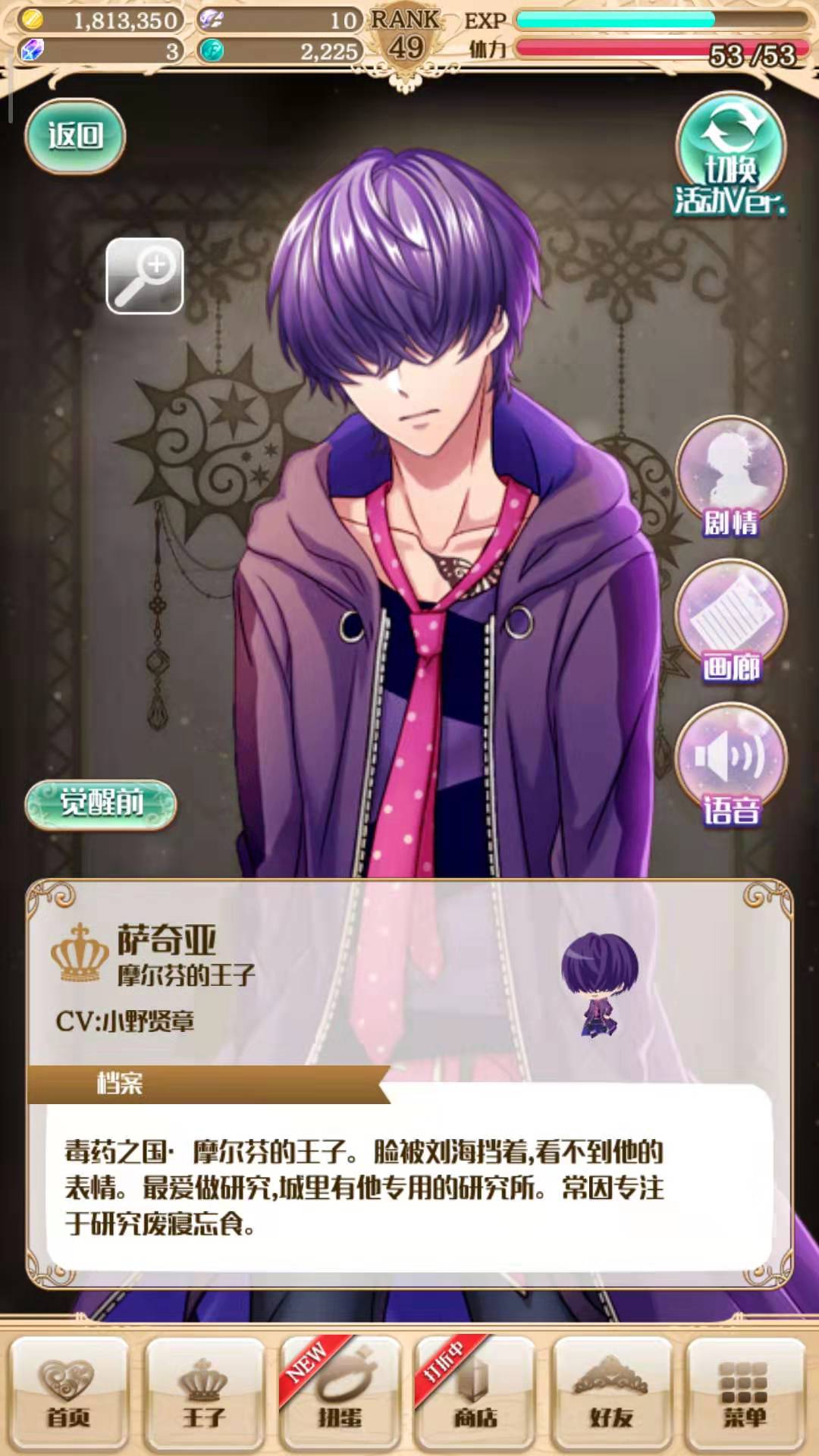 梦王子手游中的萨奇亚,是一个被厚厚的刘海遮挡住眼睛的王子,虽然擅长研制毒药,但其实有一颗救人的心。今天带来梦王子萨奇亚觉醒攻略,分析一下萨奇亚的两个觉醒倾向,以及他们分别适合什么样的阵容。