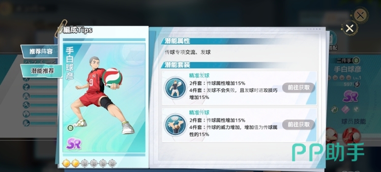 对于新手玩家来说,在游戏的早期阶段,除了要关注强力的副攻手橙卡之外,也应该注意收集像手白这样的紫卡二传手球员,至少后期培养之后这类角色能够给全队的克制属性带来一个压制效果,所以从定位上面来看手白球彦在游戏中中就是一个非常有价值的角色,他的发球、接球和传球能力都有不错的潜力,而且能够很好地融入各种阵容之中,虽然在某些方面存在不足,但只要大家合理搭配,就可以让他所在的队伍得到更高的增益哦。