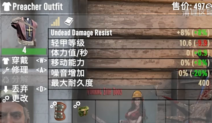 传教士上衣则提供了按百分比减免僵尸造成的伤害,五级减免10%,六级减免20%。这使得它非常适合萌新玩家,因为它提供的防御力可以与重甲相媲美,但不会降低移动速度。传教士手套也提供了类似的效果,它们按百分比提高对僵尸的伤害,每级提升10%,满级可达60%。在没有机枪的情况下,这是一个非常有利的选择。