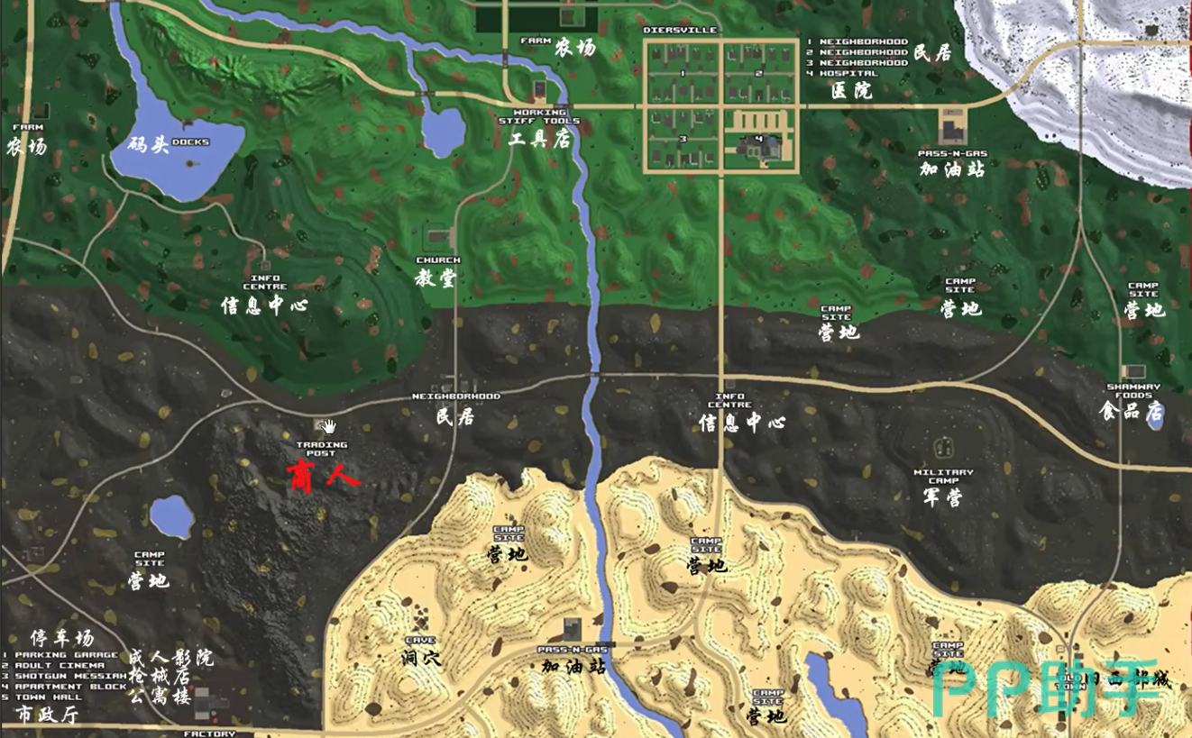 在7日杀这个版本中,地图上的商人分布十分关键。整个地图共有五个商人,分别位于雪原、火烧地、废土、松林平原以及沙漠这三个地带。值得一提的是,废土中的商人存在较大风险,因为此区域不仅有大量的地雷和狗,还有辐射丧尸的存在,这些因素使得萌新玩家进入该地区极为困难,且中期玩家也会面临不小的挑战。