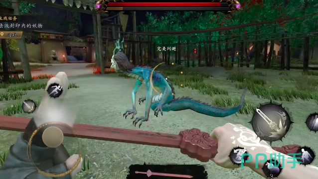 在怪物疯狂进攻的过程当中,建议玩家可以开启闪避流,利用闪避来为自己赢得更多的时间。当将怪物拖得筋疲力尽后,再使用桃木剑猛刺他的背部和腹部。而此时怪物的血条就会大量削减。