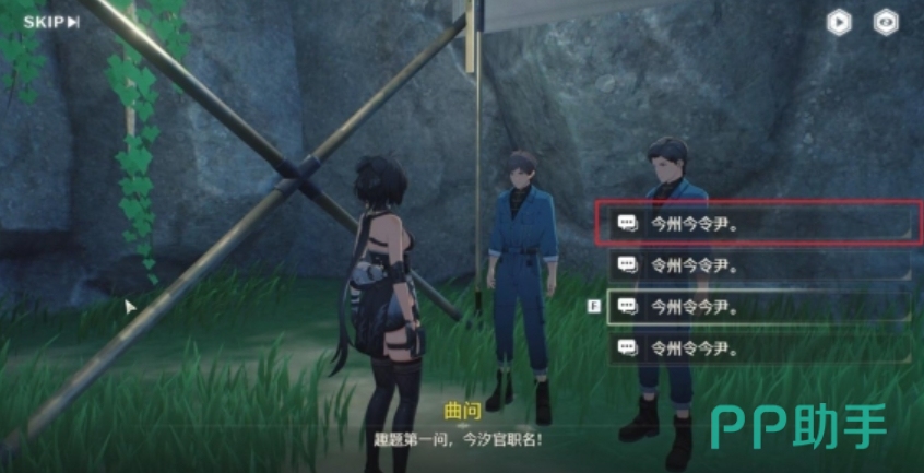 到达闻野滩后,玩家需要找到两个关键NPC:趣问和曲问,与他们对话后,玩家将进入问答环节。靠近这两个NPC,确保在他们的对话范围内,按下互动键开始交流。在对话过程中,要留意NPC提出的问题和提示。在其中,玩家将面临一个关于今汐官职名称的问题。正确答案是“今州今令尹”,选择此选项后,NPC会给出相应的反馈,并推动任务的进展。