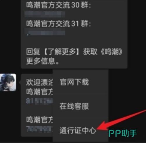 在消息对话页面中,能够看见几个选项,主要包含“游戏下载”和“通行证中心”,点击“通行证中心”进到用户登陆界面。