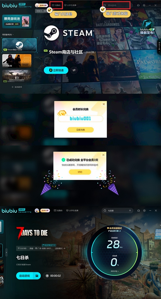 不仅如此,自8月5日起,玩家们还能够在biubiu加速器上免费享用七日杀游戏限时加速服务。这样的机会可以说相当难得,能够让玩家们在游戏中更加自如地应对各种挑战。不过需要注意的是,这个服务的结束时间将依据biubiu端内的公告为准。