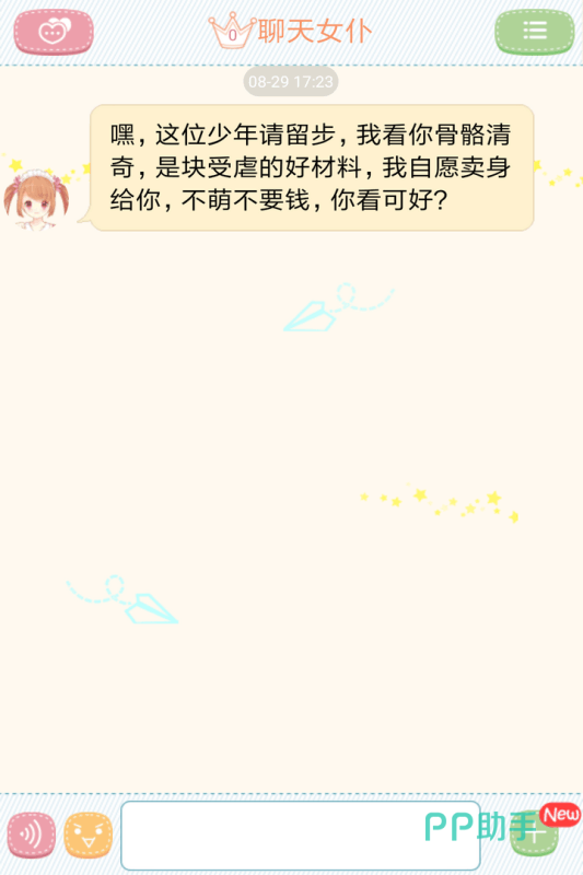 《聊天女仆》在游戏内玩家要和一个智能的机器人通过聊天互动进行任务,在聊天的过程中我们能够感受到和现实无二的真人聊天体验,加入了大量忍俊不禁的元素,玩家们甚至会感觉要比真人聊天互动更加趣味的横生,根据内容,玩家们可输入文字、图片、语音等内容,这些美女机器人都会第一时间回复大家哦。